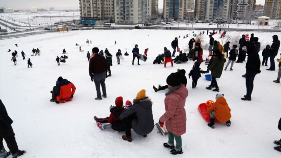Talas Belediyesi’nin kızak alanına dönüştürdüğü tepe, kar yağışının başlamasıyla yeniden ilgi odağı oldu. Doğal kayak pistine dönüşen tepede büyük küçük herkes doyasıya eğlendi.