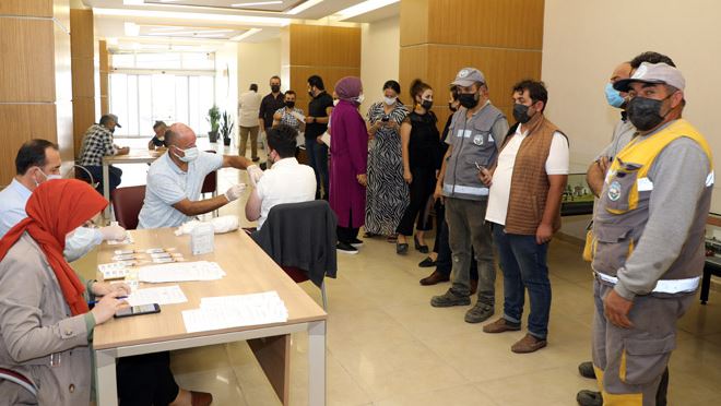 Talas İlçe Sağlık Müdürlüğü ekiplerince gerçekleştirilen yerinde aşı uygulamasıyla belediye çalışanlarının Covid-19 ikinci doz aşıları belediye hizmet binasında ve teknik birimler şantiyesinde gerçekleştirildi.