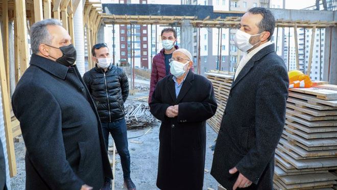 Mülkiyeti Talas Belediyesi’ne ait arsalar üzerine hayırseverler tarafından yaptırılan cami ve Kur’an kursu inşaatlarını hayırseverlerle birlikte inceleyen Başkan Yalçın, devam eden çalışmalar hakkında bilgiler aldı.