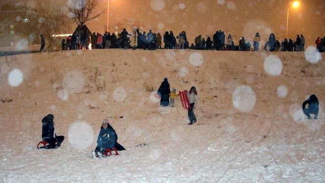 Bazı vatandaşlar evcil hayvanlarıyla alana gelirken pist çevresinde bisiklet sürmeye çalışanlar da ilginç görüntüler ortaya çıkardı. Öte yandan kendi imkanlarıyla çadır kuran ve ateş yakan gençler, araçlardan yükselen müzik eşliğinde halay çekerek kızakla kayanların eğlencesine ortak oldu. Özellikle gençlerin ve çocukların akın ettiği alanda büyükler de karın keyfini yaşadı. Kızakların yanı sıra leğen, tepsi, poşet ne varsa eline geçirdikleri tüm malzemelerle tepeden aşağıya kayan çocuklarla birlikte eğlenen büyüklerin de keyfine diyecek yoktu.