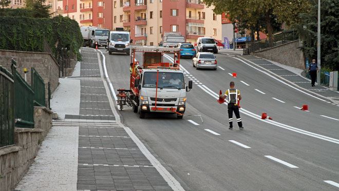 17 ton sentetik boya ve 6 ton cam tozunun kullanıldığı yol çizgisi çalışmasıyla hem araçların hem de yayaların trafik güvenliği sağlanmış oldu.