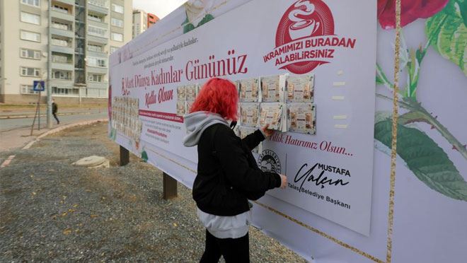 Talas Belediye Başkanı Mustafa Yalçın, ilçenin çeşitli noktalarında hazırlanan billboard ve totemlerle kadınların günlerini kutlarken, aynı zamanda hazırlanan birer içimlik paketlerle “40 yıl hatırımız olsun.” mesajı paylaştı.