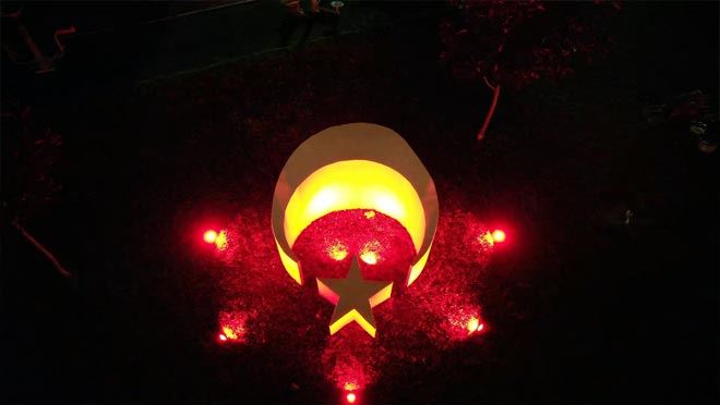6. ay-yıldız ise Kayseri Asri Mezarlığı içindeki Polis Şehitliğine yerleştirildi. Yapılan ışıklandırma çalışmalarıyla gündüz ayrı gece ayrı bir görüntüye sahip olan bayraklar görenleri gururlandırıyor.