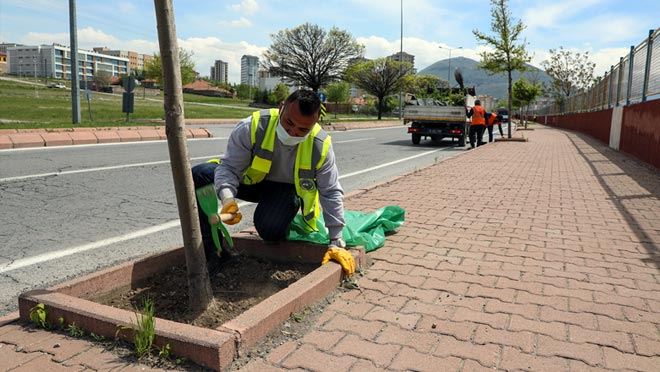 Kurumuş ot ve ağaç dallarının toplanmasından hafriyatların kaldırılmasına, dezenfekte ve ilaçlama işlemlerinden kaldırımların yıkanmasına kadar pek çok iş aynı anda yürütülerek görüntü kirliliği adına ne varsa ortadan kaldırılıyor.
