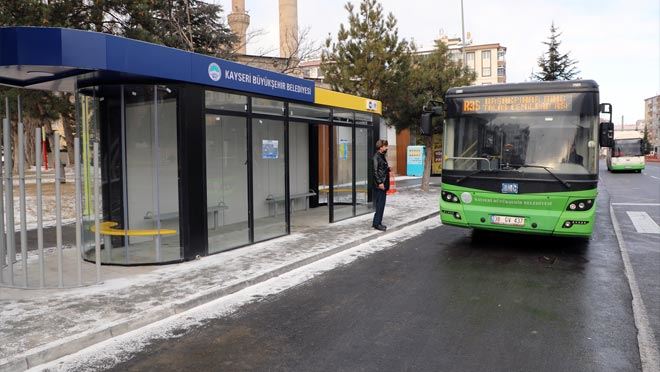 Talas Belediyesi ve Büyükşehir Belediyesi iş birliği ile kırsal mahallelere giden vatandaşlar için kapalı aktarma durağı yapıldı.