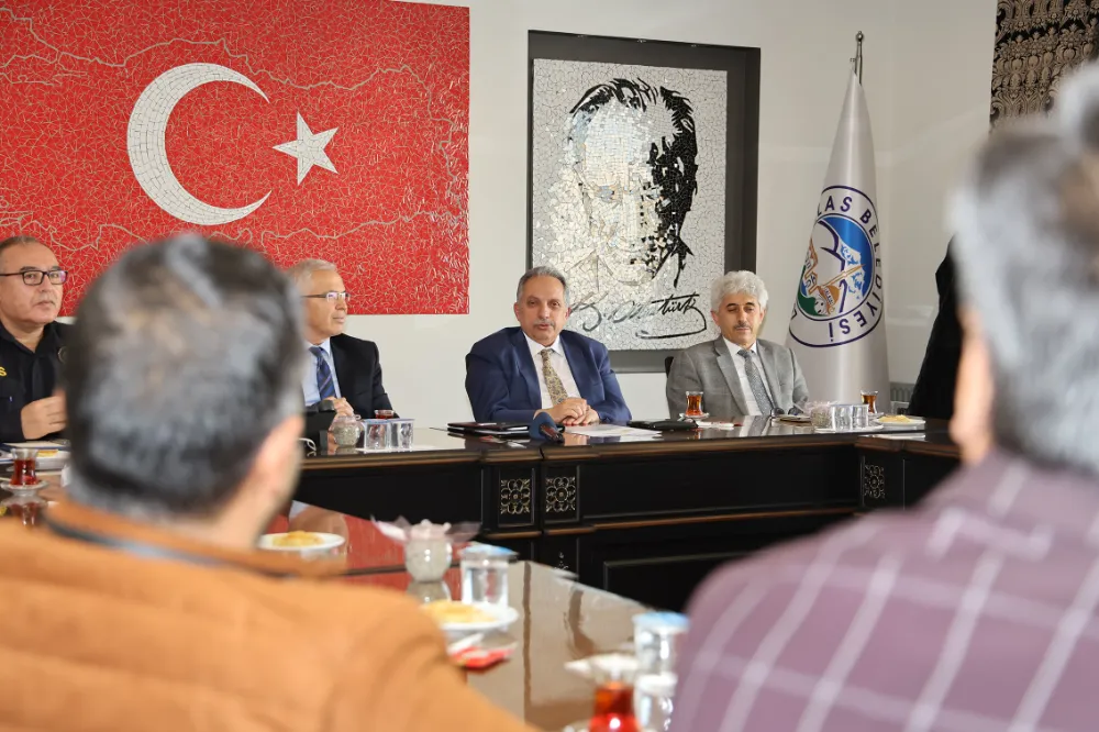 Talas Kaymakamı Yaşar Dönmez ve İlçe Emniyet Müdürü Osman Öztürk’ün de katılımıyla Başkanlık Toplantı Salonu’nda düzenlenen toplantıda, muhtarların görüş ve talepleri konuşuldu. Toplantı başlangıcında konuşan Başkan Mustafa Yalçın, iyi bir çalışma sezonu geçirdiklerini belirterek gerek korona dönemi gerekse deprem dönemi başta olmak üzere yapılan hizmetler ve yürütülen çalışmalarda başarılı bir sınav verdiklerini söyledi. Yalçın; “Hem muhtarlar açısından hem mülki idare ve emniyet bir 5 yıl geçti. Önce korona, sonra deprem derken iki buçuk senemiz böyle geçti. Biz Talas olarak bu sınavlarda elimizden geleni yaptığımızı ve başarılı bir sınav verdiğimizi düşünüyorum” dedi.