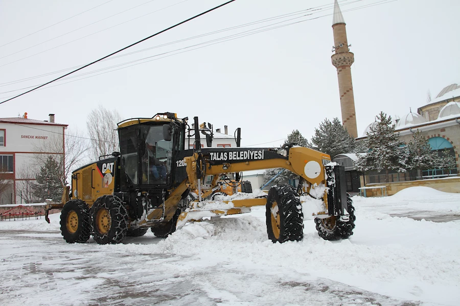 Kayseri'nin Talas ilçesinde gece saatlerinde etkili olan kar yağışının ardından belediye ekiplerinin cadde ve sokaklardaki yol temizleme çalışmaları devam ediyor.