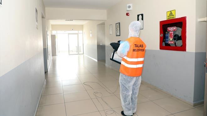 Yüz yüze eğitimin kapsamının genişlemesiyle birlikte Talas Belediyesi okullarda yaptığı temizlik ve dezenfeksiyon çalışmalarına hız verdi.