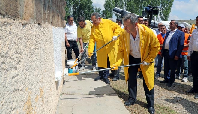 Konuşmaların ardından çalışmalar Kur´an-ı Kerim tilavetiyle ve ardından dualarla başladı. Daha sonra iş makineleri hep birlikte sahaya çıktı. Ardından protokol üyeleri iş üniformalarını giyerek okulun duvarını boyamaya başladı.