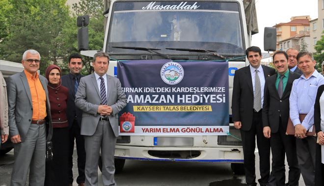 Belediye binası önündeki araçta toplanan yardımları meclis üyeleri, başkan yardımcıları ve diğer ilgililerle inceleyen Talas Belediye Başkanı Mustafa Palancıoğlu, terörün yaşandığı bölgelerden Şırnak İdil´deki vatandaşlara ve güvenlik güçlerine mübarek Ramazan ayında çeşitli hediyeler hazırladıklarını söyledi.