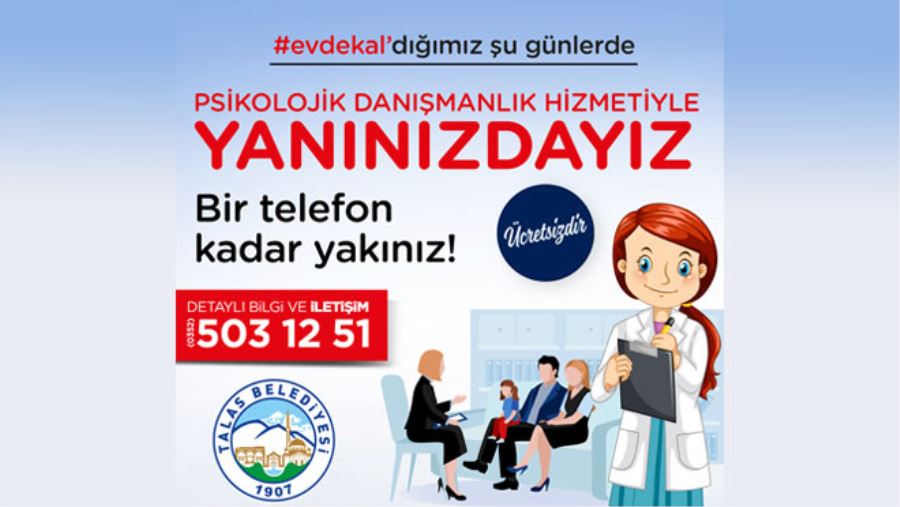 Talas Belediyesi uzman psikologları tarafından ücretsiz olarak sunulan hizmette vatandaşlara telefonla ücretsiz psikolojik danışmanlık yapılıyor. Bu çerçevede kapalı alanda uzun süre kalmanın getireceği ruhsal sorunların önüne geçilmesi hedefleniyor.