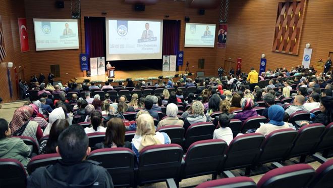 Dijital Bağımlılıkla Mücadele Derneği Genel Başkanı ve Gazi Üniversitesi Öğretim Üyesi Prof. Dr. Tuncay Dilci tarafından Kayseri Üniversitesi 15 Temmuz Yerleşkesi Kongre ve Kültür Merkezi’nde verilen seminer, öğretmenlerden yoğun ilgi gördü. Talas’taki okullarda görevli öğretmenlere yönelik gerçekleşen seminerin açılışında konuşan İlçe Milli Eğitim Müdürü Mustafa Elmalı, “Öğrencilerimizi bağımlı olmaktan kurtarıp bağlı halde yaşatmak zorundayız. O yüzden bilgisayar, telefon, tablet gibi araçları kullanırken bağımlı hale gelmelerinin önüne geçme konusunda öğretmenlerimizden katkı bekliyoruz” dedi. Talas Belediye Başkanı Mustafa Yalçın da “Kendimi başarılı addediyorum. Bunu da işinin ehli insanlarla çalışmaya borçluyum. İster insan eğitimi ister şehrin imarı olsun hep ehil insanlarla çalıştım. İşin ehli bugün sayın Tuncay Dilci hocamız, yoğunluğun arasında geldiler sağ olsunlar. Bugün dijital dünyayı sizlere anlatmak öğrencilerimize, devletimize ve milletimize sahip çıkma hassasiyetimizi hep beraber taşıdığımızdan ileri geliyor. Bir anne babanın en değerli varlığı çocuklarıdır. Öğretmenler için de öğrencilerdir. Çocuklarımız üzerinde kurgulanan zehri, dışına sarılmış şeker gibi sunanlar var. Bugün dijital dünyadaki sıkıntıları bilmezsek olmaz. Siz öğretmenler bizim için, öğrenciler için, aileler için Türkiye Cumhuriyeti için o kadar ehemmiyetlisiniz ki anlatmaya kelimeler yetmez. Bu yüzden sık sık bir araya gelelim, bu konularda donanmamız gereken konuları donanalım. Bizim işimiz size hizmet etmek, şehrin imarıyla beraber kişilerin ihyasına katkıda bulunmak.” diye konuştu. Kayseri Üniversitesi Rektörü Prof. Dr. Kurtuluş Karamustafa da programın düzenlenmesinden dolayı Başkan Yalçın’a teşekkür ederek, “Bu salon halkımıza, belediyemize açık. Bu salon sadece üniversitenin değil. Her türlü sosyal ve kültürel faaliyetler için açık.” ifadelerini kullandı.