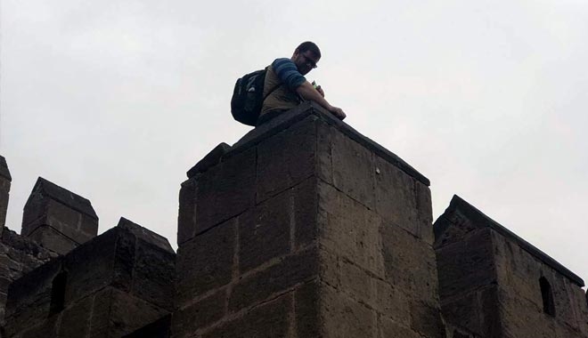 Tarihi Kayseri kalesine çıkan bir şahıs, elindeki cam parçalarıyla kendini keserek zarar verdi.