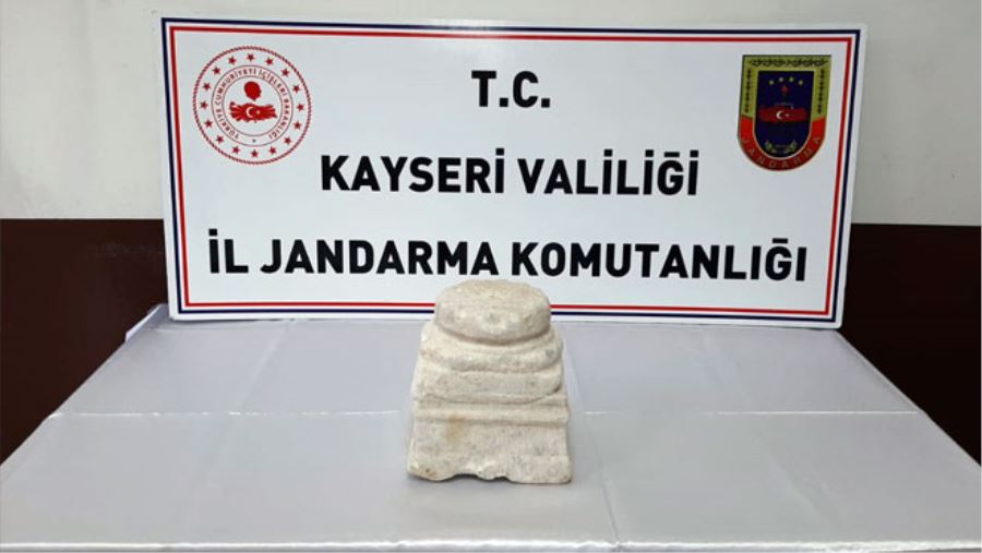 Kayseri'de jandarma ekiplerinin yaptığı çalışmada 1800 yıllık tarihi sütun ele geçirilirken, bir kişi gözaltına alındı.