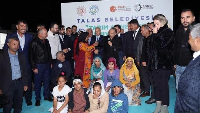 Talas Belediye Başkanı Mustafa Yalçın da, "Şuan hava şartları olumsuz olsa da bizim içimiz kıpır kıpır. Çünkü burada insana insan gibi yaşaması için verilen bir değer var. Onu yaşamak ve bir sebep olmak ayrıca sonsuz bir konudur. Pandemi döneminde anlaşıldı ki, en önemli sektörümüz gıdadır. Yani tarım ve hayvancılık. Tarım işçileri, tarımla uğraşanlar, hem yerliler hem de buraya işçi olarak gelen kardeşlerimizin olumsuz şartlarını olumluya çevirmek üzere burada 30 tane konteyner ev yaptık. Bu konteynerdan ayrıca çamaşır yıkama konteynırı, bir tane de çocuklar için eğitim konteynırı var. Ayrıca bir de idari bina var. Emeği geçen ORAN Kalkınma Ajansına teşekkür ederim. Elbette buranın altyapısıyla ilgili belediyemizde arkadaşlarımız çok emek verdiler. Son dakikaya kadar bu çalışma devam etti ve devam ediyor. Şükürler olsun ki, insana değer vermek adına burada böyle bir faaliyetin yapılmış olması bizi onurlandırıyor ve gururlandırıyor. Türkiye Cumhuriyetinin bir neferi olmak bizim için son derece onur ve gurur verici bir şey. Allah'a çok şükür ki devletimiz var ve ilelebet payidar olsun" şeklinde konuştu.