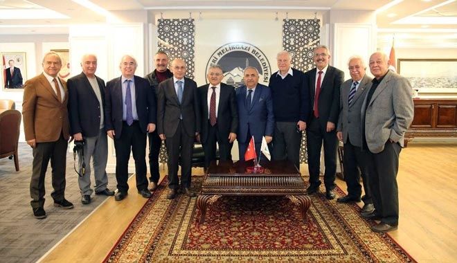 Taş Mektep Kayseri Lisesi Mezunları Dernek Başkanı Metin Yücel ve Onur Kurulu üyeleri Melikgazi Belediye Başkanı Dr. Memduh Büyükkılıç´ı makamında ziyaret ederek görüş alışverişinde bulundular.