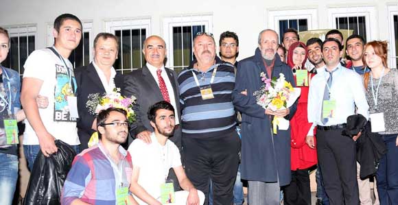 Erciyes Üniversitesi İletişim Fakültesi Süleyman Çetinsaya Konferans Salonunda oynayan Taş Mektep filmine, Talas Belediye Başkanı Rifat Yıldırım ile eşi Aynur Yıldırım'ın yanı sıra, Türk sinemasının birbirinden ünlü isimleri ve filmin usta oyuncusu Can Kolukısa ile yapımcısı Galip Güner katıldı.