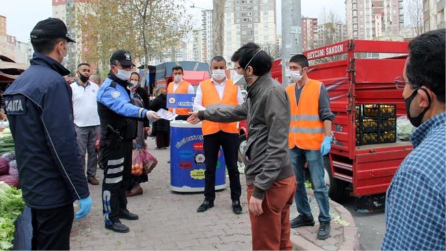 İl Emniyet Müdürlüğü Toplum Destekli Polislik Şube Müdürlüğü personeli Talas Belediyesi Zabıta ekiplerinin desteği ile Anayurt Pazar yeri girişinde Coıvıd-19 bulaşıcı hastalıktan korunma tedbirleri kapsamında vatandaşlara maske takma, izolasyon, sosyal mesafe ve Coıvıd-19 tedbirleri konusunda bilgilendirme yapıldı.