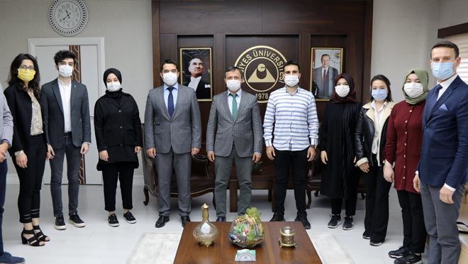 Havacılık, Uzay ve Teknoloji Festivali (TEKNOFEST) 2020 kapsamında çeşitli yarışmalarda derece alan öğrenciler, Erciyes Üniversitesi (ERÜ) Rektörü Prof. Dr. Mustafa Çalış’ı ziyaret ettiler.