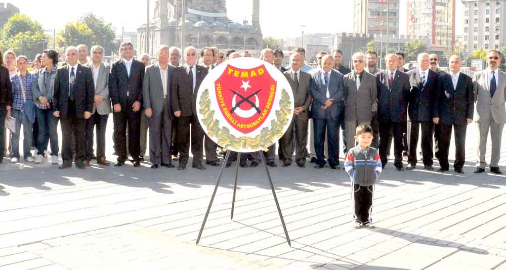 Kutlama programı kapsamında Şube Başkanı Burhan Pişkin ve dernek üyeleri, Cumhuriyet Meydanı'ndaki Atatürk Anıtı'na çelenk sunarak, saygı duruşunda bulundu.
