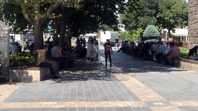 Kayseri'de artan sıcaklıklardan korunmak isteyen vatandaşlar ağaç gölgelerine sığındı.