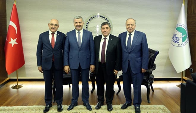 Büyükşehir Belediye Başkanı Mustafa Çelik, Nisan ayı ihracat rakamlarını açıklamak için Kayseri´ye gelen TİM Başkanı Mehmet Büyükekşi ve yönetim kurulu üyeleri ile bir süre makamında görüştü. Sanayicinin halinden anlayan kişilerin üst düzey görevlerde olmasını istediklerini ifade eden Büyükekşi, bu anlamda Başkan Mustafa Çelik´i Büyükşehir Belediye Başkanlığı´nda görmekten mutlu olduklarını dile getirdi. Kayseri´nin özellikle sanayisi açısından Türkiye´de öncülük etmiş bir şehir olduğunu vurgulayan Mehmet Büyükekşi, ?İlk uçak fabrikası kurulmasından bugüne kadar, mobilya kümelenmesi, elektrik ve elektronikte almış olduğu yol gerçekten çok önemli? dedi. Doğru planlamayla hedefe daha çok yaklaşıldığını ifade eden Büyükekşi, Başkan Çelik ?in liderliğinde güzel hedeflerin yakalanacağını vurguladı. Son zamanlarda yerli ve milli üretim akımı olduğunu ve bu akımın başında savunma sanayinin geldiğini belirten TİM Başkanı Büyükekşi, ?Siz zaten yüksek katman değerlerin önemini bizden daha iyi biliyorsunuz. O yüzden de Kayseri´de lojistik, altyapı ve insan kaynağı olarak güzel bir potansiyel var. İnşallah sizlerle birlikte güzel şeyler olur? dedi.