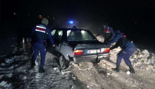 Kayseri´nin Akkışla ilçesinde yoğun kar yağışı ve tipi nedeniyle mahsur kalan 3 araçtaki 14 kişi jandarma ve belediye ekiplerince kurtarıldı.