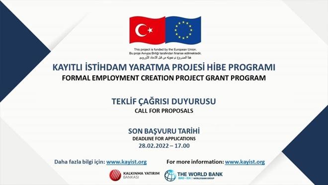Türkiye Kalkınma ve Yatırım Bankası'nın (TKYB) Dünya Bankası ile yürütmekte olduğu ve AB’nin Mülteciler ve Ev Sahibi Topluluklara Desteği (FRIT II) kapsamında AB hibesi ile fonlanan Kayıtlı İstihdam Yaratma Projesi Hibe Programı 17 Aralık 2021 tarihinde Projenin web sayfası olan https://kayist.org/ aracılığıyla ilan edildi.