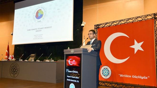 Kayseri Ticaret Odası (KTO), Türkiye Odalar ve Borsalar Birliği’nin (TOBB) ABD’nin Şikago şehrindeki Türkiye Ticaret Merkezi’ni ihracatçı üyelerine tanıtmak amacıyla seminer düzenledi. KTO Yönetim Kurulu Başkan Yardımcısı Hasan Köksal’ın başkanlığında yapılan seminerde TOBB Ticaret Merkezleri Genel Müdürü Noyan Ciritoğlu, Şikago Türkiye Ticaret merkezi hakkında bir sunum yaparak ayrıntılı bilgiler verdi. Toplantıya KTO üyesi çok sayıda ihracatçı üye katıldı.