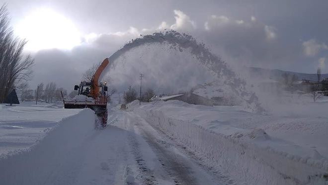 Yoğun kar yağışı ve tipi nedeniyle bir süredir kapalı olan Tomarza-Tufanbeyli karayolunda kar küreme ve temizleme çalışmaları devam ediyor.