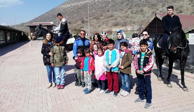 Toplum Destekli Polislik tarafından düzenlenen geziye katılan çocuklar, atlara ve diğer hayvanlara ilgi gösterirken eğlenceli zaman geçirdi. Gezinin sonunda Toplum Destekli Polisler tarafından çocuklara polis kimlik kartları verildi.