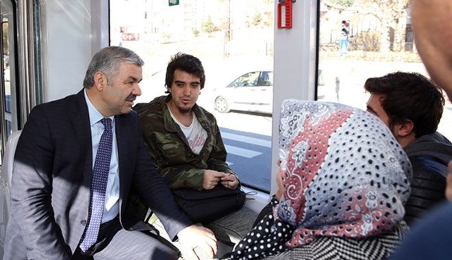 Hemen her fırsatta halkın içinde olmaya özen gösteren Büyükşehir Belediye Başkanı Mustafa Çelik, raylı sistemle yolculuk ederek vatandaşlarla sohbet etti. Başkan Çelik, vatandaşların yeni tramvaylarla ilgili görüşlerini de aldı.