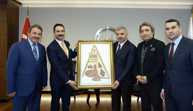 Ziyarette TÜMKAYDER Başkanı Temel, Başkan Çelik´e bir tablo hediye etti.