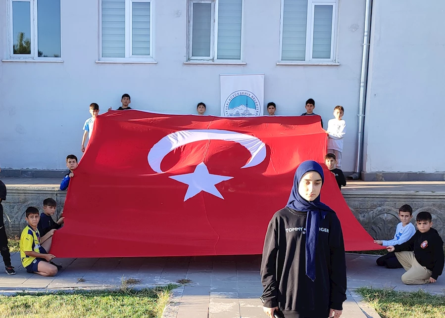 Taşıdıkları Türk bayraklarıyla şehitleri anan öğrenciler, İstiklal Marşı'nın 10 kıtasını okudu.