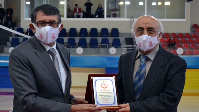 Uzun yıllar voleybolda hakem ve gözlemci olarak görev yapan Hacı Erol ve Ahmet Akkaya'ya Türkiye Voleybol Federasyonu tarafından teşekkür plaketi verildi.
