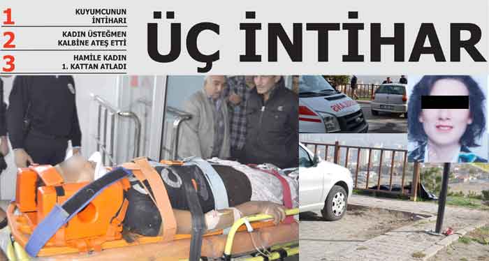 İlimizde ki son intihar vakasında ise eşi ile tartıştığı iddia edilen hamile kadın evlerinin 1. Katından atlayarak ölmek istedi. Kocasinan İlçesi Yavuz Selim mahallesinde yaşanan olayda eşiyle tartıştığı iddia edilen 25 yaşındaki hamile S.I. evlerinin 1. katından atlayarak intihar etmek istedi. Olay yerine gelen 112 acil servis ekipleri yaralı S.I.’yı Erciyes Üniversitesi Tıp Fakültesi acil servisine kaldırarak tedavi altına alındı. Polis, olayla ilgili inceleme başlattı.