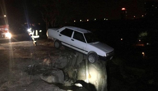 Edinilen bilgiye göre, Germir Mahallesi´nde sürücüsünün ismi ve plakası öğrenilemeyen otomobil, uçurumun kenarında asılı kaldı. Durumun bildirilmesi üzerine olay yerine gelen itfaiye ekipleri, otomobili kurtarmak için yoğun çaba sarf etti. Neredeyse yarısı boşlukta kalan otomobil, vatandaşların da yardımıyla uzun uğraşlar sonucu aşağı düşmekten kurtarılarak güvenli alana çekildi.