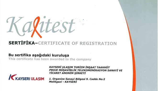 Ulusal ve uluslararası platformda ödüller alan, ulaşıma yönelik geliştirdiği sistemleri ihraç eder hale gelen Kayseri Büyükşehir Belediyesi Ulaşım A.Ş. kalitesini de tescilledi. Ulaşım A.Ş. enerji yönetim sistemi kalitesi belgesi aldı.