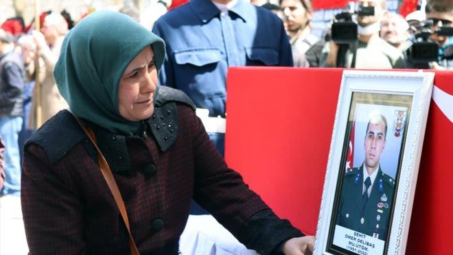Cenazeye katılan bir başka şehit annesi de, şehidin fotoğrafını cenaze namazına katılanlara göstererek, "Şehidimin arkadaşı. O da şehit oldu" diyerek gözyaşı döktü.