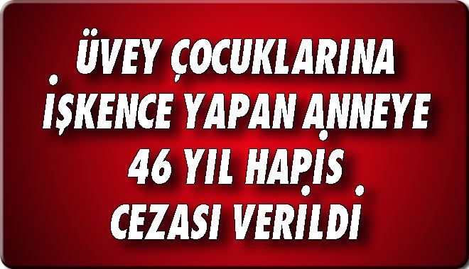 Kayseri´de, iki üvey çocuğuna işkence yaparak bağırsaklarını yırtan üvey anneye yapılan yargılamada 46 yıl 9 ay hapis cezası verildi.