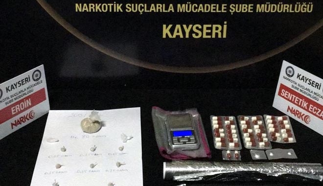 Kayseri İl Emniyet Müdürlüğü Narkotik Suçlarla Mücadele Şube Müdürlüğü ekipleri tarafından kentte düzenlenen uyuşturucu operasyonunda, Y.T., T.K., C.Y., T.S., M.A., Y.H., C.E., M.E., İ.Ş., H.K., E.K., M.Y. ve A.B.S. yakalandı. Yapılan aramada, 9 parça halinde 16.80 gram eroin maddesi, 1 adet uyuşturucu paketlemesinde kullanılan rulo alüminyum folyo, 1 adet hassas terazi, 3 parça halinde 4.23 gram metemfetamin maddesi, özel reçeteye tabi 42 adet Lyrica hap ve özel reçeteye tabi 2 adet suboxone hap ele geçirildi.