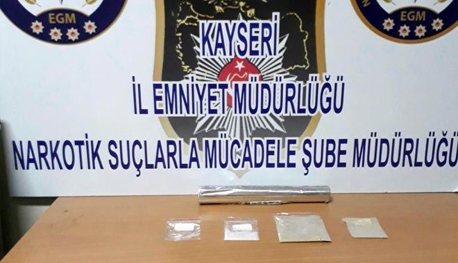 Kayseri İl Emniyet Müdürlüğü Narkotik Suçlarla Mücadele Şube Müdürlüğü ekipleri tarafından Alan Denetimi Projesi kapsamında Talas´ta uygulama yapıldı. Yapılan uygulamada durumlarından şüphelenilen M.Ş. (30), R.Y. (25), M.V.Ö. (28), B.D.D. (24) ve A.D. (33) yakalandı. Yakalanan şahısların üst ve araçlarında yapılan aramalarda 2 parça halinde toplam 23 gram eroin ve yine 2 parça halinde 4.5 gram metamfetamin maddesi ele geçirildi.