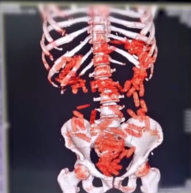 Hastaneye sevk edilen A.G'nin röntgen ve tomografi görüntülerinde ise mide ile bağırsağında çok sayıda yabancı cisim bulunduğu tespit edildi.