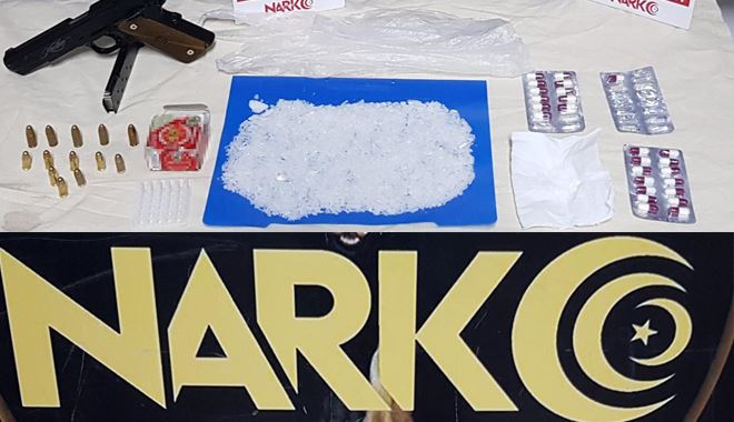 Edinilen bilgiye göre, Kayseri İl Emniyet Müdürlüğü Narkotik Suçlarla Mücadele Şube Müdürlüğü ekipleri, E.T.'nin araç ile uyuşturucu madde ticareti yaptığı bilgisi üzerine harekete geçti. Aracı tespit eden ekipler, durdurmak istedi. İhtara uymayarak kaçan araç durdurulurken, içerdeki 2 kişi kapıyı açmadı. Narkotik polisleri aracın camını kırarak şahısları yakaladı. Araçta yapılan aramada ise, çeşitli miktarlarda uyuşturucu madde, 1 adet hassas terazi, 26 adet sentetik hap, 1 adet uyuşturucu tartımında kullanılan ölçek kaşık, 1 adet ruhsatsız tabanca ve 13 adet fişek ele geçirildi. Olayla ilgili 2 şüpheli şahsa işlem yapılırken, E.T. 'uyuşturucu madde ticareti yapmak' suçundan gözaltına alındı.