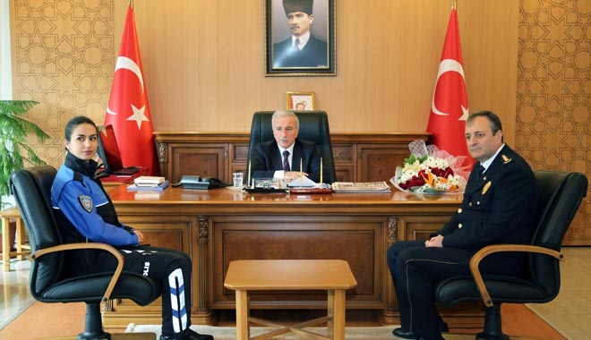 İl Emniyet Müdürü İbrahim Kulular, Polis Teşkilatı´nın kuruluşunun 173´üncü yıldönümü dolayısıyla beraberindeki polis memurları ile birlikte Kayseri Valisi Süleyman Kamçı´yı makamında ziyaret etti.