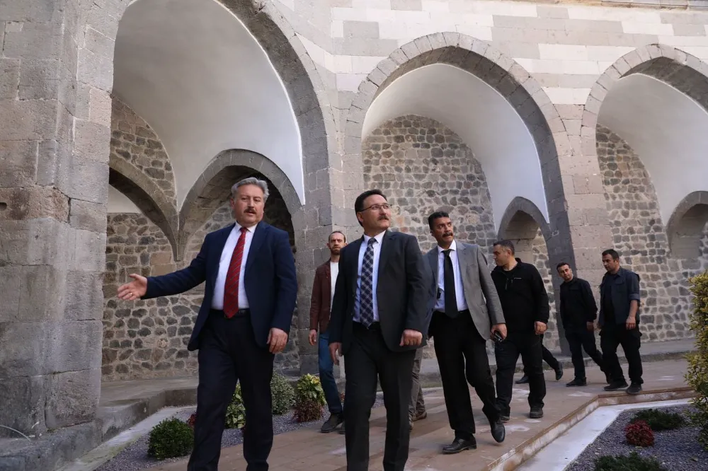 Melikgazi Belediye Başkanı Doç. Dr. Mustafa Palancıoğlu, asırlara tanıklık etmiş olan Tarihi Köşk Medrese’nin restorasyon çalışmalarını Vali Gökmen Çiçek ile birlikte inceledi.