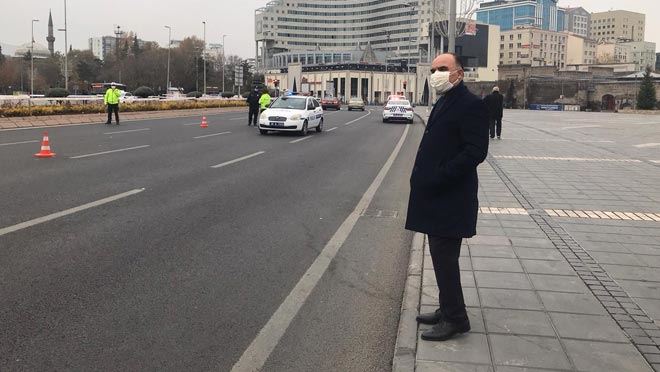 Vali Şehmus Günaydın Cuma günü akşam saat 21:00 da başlayan sokağa çıkma yasağı nedeni ile Cumhuriyet Meydanın da polis kontrol noktasında denetleme yaptı ve vatandaşlara maske mesafe konusunda uyarılarda bulunarak izin belgelerini kontrol etti.