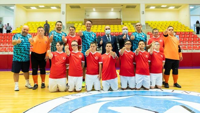 Kayseri Valisi Şehmus Günaydın, Kayseri Üniversitesi Rektörü Prof. Dr. Kurtuluş Karamustafa ile birlikte Down Sendromlular Futsal Milli Takımının Kayseri Üniversitesi Kapalı Spor Salonu’ndaki antrenmanını izledi.