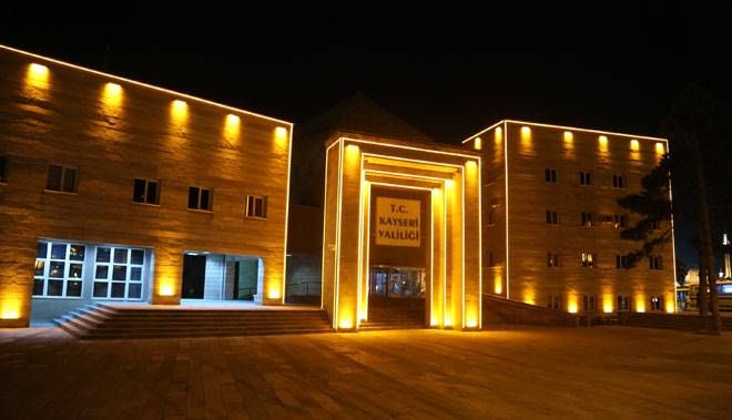 Kayseri Valiliği hizmet binasının ışıklandırmasının tamamlanmasıyla Roma, Selçuklu ve Osmanlı dönemine ait eserlerin yer aldığı Cumhuriyet Meydanı´nda ışık ahengi sağlanarak farklı bir görsel güzellik oluştu.