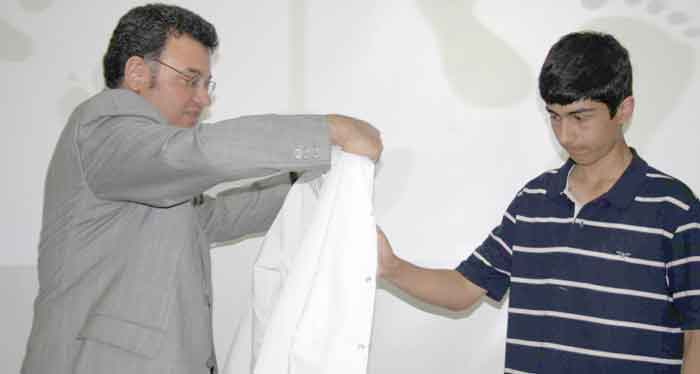 Konuşmaların ardından öğrenciler, önlüklerini giydi.